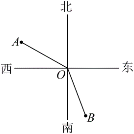 如图,在灯塔 $O$ 处观测到轮船 $A$ 位于北偏西 $60^{\circ}$ 的方向,同时轮船 $B$ 在南偏东 $20^{\circ}$ 的方向,那么 $\angle A O B$的大小为