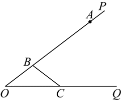 如图,已知 $\angle P O Q$ ,点 $A, B$ 在射线 $O P$ 上,点 $C$ 在射线 $O Q$ 上.