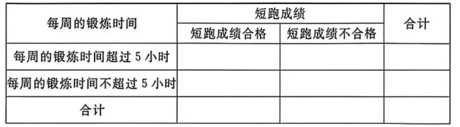 某兴趣小组调査了某校 100 名学生 100 米短跑成绩的情况,其中有 60 名学生的短跑成绩合格。这 100 名学生中有 45 名学生每周的锻㑈时间超过 5 小时, 60 名短跑成绩合格的学生中有 35 名学生每周的锻炼时间超过 5 小时.
