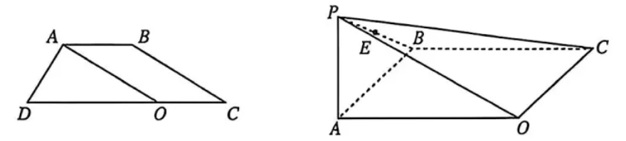 如图,梯形 $A B C D$ 中,$O$ 为 $D C$ 上一点,$A B=2, A D=2, A O=2 \sqrt{3}$ ,且 $A O \perp A D$ , $A O / / B C$ ,将 $\triangle D A O$ 沿着 $A O$ 翻折至 $\triangle P A O$ 所在位怚,使得平面 $P A O \perp$ 平面 $A B C O$ ,连接 $P B, P C$ ,得到四棱锥 $P-A B C O, E$ 为 $P B$ 的中点.