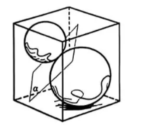 (选择性必修-P145习题 2 改编)如图,在棱长为 1 的封闭正方体容器(容器壁厚度忽略不计)内放置两个石球,两个石球相切,且各自与对角的三个面均相切,设过两球公切点的公切平面为 $\alpha$ ,则下列结论正确的是