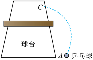 2025年乒乓球"WTT"北京站比赛中,中国选手在某次击球时打出精彩的"十佳穿越球"。如题图所示,乒乓球行至水平球台台面右下方 $A$ 点时,经选手击打后,受空气影响,在空中划出美丽的弧线,穿越球网右侧后落入对方球台得分。则该乒乓球由 $A$ 点到落点 $C$ 的过程中