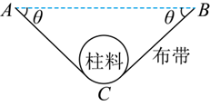 一建筑基地上,两工人师傅用一轻质条形布带半包裹着一圆柱形石料匀速前进。如图所示,$A 、 B$ 为工人施力点,$C$ 为布带最低点,两侧布带与水平方向的夹角均为 $\theta=30^{\circ}$ ,若该柱料重力为 $G$ ,则布带对该石料的作用力大小为