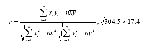并计算得 $\sum_{i=1}^{10} x_i^2=353.6, \sum_{i=1}^{10} y_i^2=361.7, \sum_{i=1}^{10} x_i y_i=357.3, \bar{x}^2 \approx 33.62, \bar{y}^2 \approx 34.42, \overline{x y} \approx 34.02$
