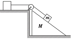 如图所示,物体 $m$ 通过定滑轮牵引另一水平面上的物体并沿斜面匀速下滑,此过程中斜面仍静止,斜面质量为 $M$ ,则水平地面对斜面体()