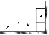 如图所示,物块 $a 、 b$ 的质量分别为 $2 m 、 m$ ,水平地面和坚直墙面均光滑,在水平推力 $F$ 作用下,两物块均处于静止状态,则
