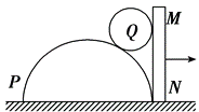 半圆柱体 $P$ 放在粗糙的水平地面上,其右端有一固定放置的坚直挡板 $M N$ .在半圆柱体 $P$ 和 $M N$ 之间放有一个光滑均匀的小圆柱体 $Q$ ,整个装置处于静止。如图所示是这个装置的纵截面图.若用外力先使 $M N$ 保持坚直,然后缓慢地水平向右移动,在 $Q$ 落到地面以前,发现 $P$ 始终保持静止.在此过程中,下列说法中正确的是