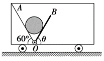 如图所示,一辆小车静止在水平地面上,车内固定着一个倾角为 $60^{\circ}$ 的光滑斜面 $O A$ ,光滑挡板 $O B$ 可绕转轴 $O$ 在坚直平面内转动,现将一质量为 $m$ 的圆球放在斜面与挡板之间,挡板与水平面的夹角 $\theta=60^{\circ}$ ,下列说法正确的是