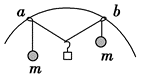 如图,两个轻环 $a$ 和 $b$ 套在位于坚直面内的一段固定圆弧上;一细线穿过两轻环,其两端各系一质量为 $m$ 的小球。在 $a$ 和 $b$ 之间的细线上悬挂一小物块。平衡时,$a 、 b$ 间的距离恰好等于圆弧的半径.不计所有摩擦.小物块的质量为()