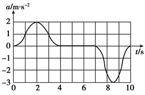 一人乘电梯上楼,在坚直上升过程中加速度 $a$ 随时间 $t$ 变化的图线如图所示,以坚直向上为 $a$ 的正方向,则人对地板的压力