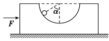 如图所示,质量为 $M$ 、中空为半球形的光滑凹槽放置于光滑水平地面上,光滑槽内有一质量为 $m$ 的小铁球,现用一水平向右的推力 $F$ 推动凹槽,小铁球与光滑凹槽相对静止时,凹槽圆心和小铁球的连线与坚直方向成 $\alpha$ 角,则下列说法正确的是()