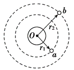 如图,若两颗人造卫星 $a$ 和 $b$ 均绕地球做匀速圆周运动,$a 、 b$ 到地心 $O$的距离分别为 $r_1 、 r_2$ ,线速度大小分别为 $v_1 、 v_2$ ,则