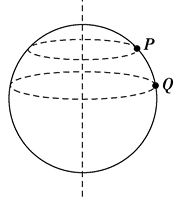如图所示,$P 、 Q$ 是质量均为 $m$ 的两个质点,分别置于地球表面的不同纬度上,如果把地球看成一个均匀球体,$P 、 Q$ 两质点随地球自转做匀速圆周运动,则下列说法正确的是