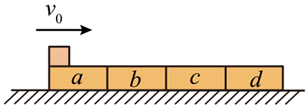 如图为某商家为吸引顾客设计的趣味游戏。 4 块相同木板 $a 、 b 、 c 、 d$ 紧挨着放在水平地面上。某顾客使小滑块(可视为质点)以某一水平初速度从 $a$ 的左端滑上木板,若滑块分别停在 $a 、 b 、 c 、 d$ 上,则分别获得四、三、二、一等奖,若滑离木板则不得奖。已知每块木板的长度为 $L$ 、质量为 $m$ ,木板下表面与地面间的动摩擦因数均为 $\mu$ ,滑块质量为 $M=2 m$ ,滑块与木板 $a 、 b 、 c 、 d$ 上表面间的动摩擦因数分别为 $\mu 、 2 \mu 、 2 \mu$ 、 $4 \mu$ ,重力加速度大小为 $g$ ,最大静摩擦力与滑动摩擦力视为相等,下列说法正确的是