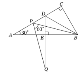 在Rt $\triangle A B C$ 中, $\angle A C B=90^{\circ}, \angle A=30^{\circ}, B D$ 是 $\triangle A B C$ 的角平分线, $D E \perp A B$ 于点 $E$.在线段 $A D$ 上任取一点 $P$, 以 $P B$ 为一边, 在 $P B$ 的下方作 $\angle B P Q=60^{\circ}, P Q$ 交 $D E$ 延长线于点 $Q$. 请判断线段 $D A, D P, D Q$ 之间的数量关系, 并证明你的结论.