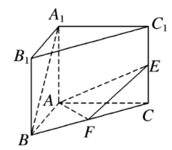 如图, 在直三棱柱 $A B C-A_1 B_1 C_1$ 中, $A B=A C=A A_1=2, \angle B A C=90^{\circ}, E, F$ 依次为 $C_1 C, B C$ 的中点.