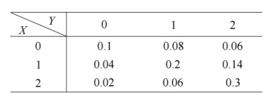 加油站有两套用来加油的设备, 设备 $A$ 是工作人员操作的, 设备 $B$ 是顾客自己操作的, $A 、 B$ 均装有两根加油软管, 任取一时间, $A 、 B$ 正在使用的软管数分别为 $X 、 Y, X 、 Y$ 的联合分布律为下表,求: