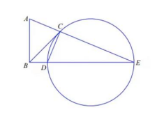 已知三角形 $\mathrm{ABE}$ 为直角三角形, $\angle \mathrm{ABE}=90^{\circ}, \mathrm{BC}$ 为圆 $\mathrm{O}$ 切线, $\mathrm{C}$ 为切点, $\mathrm{CA}=\mathrm{CD}$, 则 $\triangle \mathrm{ABC}$ 和 $\triangle$ $\mathrm{CDE}$ 面积之比为()