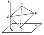 如图, 直线 $l \perp$ 平面 $\alpha$, 垂足为 $O$, 正四面体 $A B C D$ (所有棱长都 相等的三棱锥) 的棱长为 $2, C$ 在平面 $\alpha$ 内, $B$ 是直线 $l$ 上的动 点, 当 $O$ 到 $A D$ 的距离最大时, 该正四面体在平面 $\alpha$ 上的射影 面积为