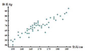 如图, 是某校随机抽取 50 名学生的身高与体重的 散点图, 则下列说法正确的是