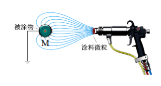 如图是静电喷涂示意图, 被涂物 $\mathrm{M}$ 带正电, 喷枪喷出的涂料微粒带负电, 在静电力作用下向 $\mathrm{M}$ 运动, 最后吸附在其表面上, 忽略微粒间相互作用, 则涂料微粒在靠近 $\mathrm{M}$ 的过程中
