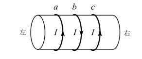 如图, 三个相同金属圆环 $a 、 b 、 c$ 紧套在绝缘圆柱体上, 圆环中通有相同大小的电流,其中 $a 、 b$ 电流方向相反, $a 、 c$ 电流方向相同. 已知环 $a$ 对环 $c$ 的安培力大小为 $F_1$, 环 $b$ 对环 $c$ 的安培力大小为 $F_2$, 则环 $c$ 受到安培力的合力