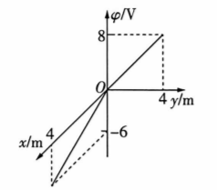 在空间中存在与 $x O y$ 平面平行的匀强电场, $x 、 y$ 轴上电势随位置变化的图象如图所示, 则下列说 法正确的是