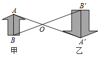 如图,图形甲与图形乙是位似图形,$O$ 是位似中心,位似比为$2:3$ ,点$A,B$ 的对应点分别为点$A',B'$, 若 $AB=6$,则 $A'B'$的长为 (  )
