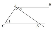 如图, $A B / / C D, A D \perp A C$, 若 $\angle 1=55^{\circ}$, 则 $\angle 2$ 的度数为