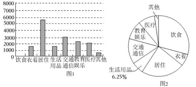 (1)2022年该市居民人均总支出为元, 图 2 中其他支出所对应扇形的圆心角的度数为