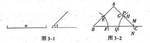如图 3-1, 已知线段 $a, \angle 1$, 求作 $\triangle A B C$, 使 $B C=a, \angle A B C=\angle B C A=$ $\angle 1$, 张雷的作法如图 3-2 所示, 则下列说法中一定正确的是。