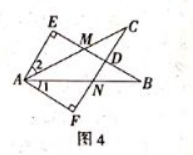如图 4, $E B$ 交 $A C$ 于 $M$, 交 $F C$ 于, $A B$ 交 $F C$ 于 $N, \angle E=\angle F=90^{\circ}, \angle B=\angle C, A E=A F$. 给 出下列结论: