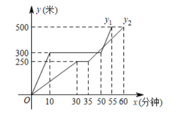 龟兔赛跑之后, 输了比赛 兔子决定和乌龟再赛一场. 图中的函数图象表示了龟兔再次赛跑的过程 $(x$ 表示兔子和乌龟从起点出发所走的时间, $y_1, y_2$ 分别表示兔子与乌龟所走的路程). 下列说法错误的是 ( )