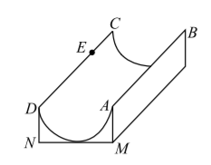 如图是一个供滑板爱好者使用的 $U$ 型池, 该 $U$ 型池可以看作是一个长方体去掉一个半圆柱而成, 中间可供滑行部分的截面是半径为 $4 \mathrm{~m}$ 的半圆, 其边缘 $A B=C D=20 \mathrm{~m}$, 点 $E$ 在 $C D$ 上, $C E=4 \mathrm{~m}$, 一滑行爱好者从 $A$ 点滑行到 $E$ 点, 则他滑行的最短距离为 ( ) $\mathrm{m}(\pi$ 的值为 3$)$.