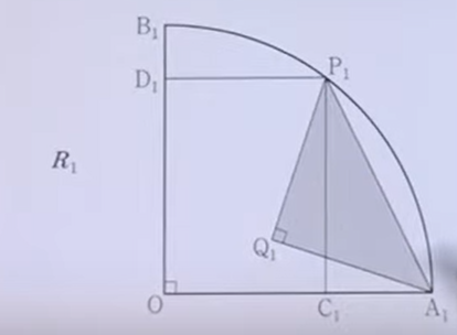 如图所示,有圆心为$O$,半径为$1$,圆心角为$\frac{\pi}{2}$的扇形 $OA_1B_1$, 弧$A_1B_1$ 上有一点$P_1$,到$OA_1$的垂直为$C_1$,到$OB_1$的垂足为$D_1$,矩形$OC_1P_1D_1$满足 $\overline{O C_1}: \overline{O D_1}=3: 4$ 扇形$OA_1B_1$内部的点$Q_1$满足 $\overline{P_1 Q_1}=\overline{A_1 Q_1}, \angle P_1 Q_1 A_1=\frac{\pi}{2},$ 将等腰直角三角形 $P_1Q_1A_1$涂上阴影,得到图像$R_1$,在图像$R_1$的基础上,在$OA_1$上取点$A_2$, $OB_1$上取点$B_2$,使 $\overline{O Q_1}=\overline{OA_2} =\overline{OB_2} $ 以O为圆心, $\overline{O Q_1} $ 为半径,做圆心为 $\frac {\pi} {2}$ 扇形 $OA_2B_2$, 与$R_1$类似的方法做出 $P_2, C_2,D_2,Q_2$,并得到图像$R_2$, 重复这一过程n次,得到图像${R_n}$ 阴影部分的面积合计为 $S_n$,