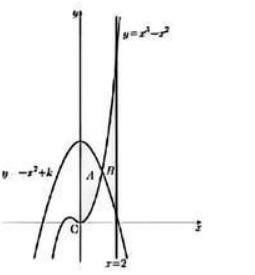 记曲线 $y=x^3+x^2, y=-x^2+k(4 < k < 5)$ 与 $y$ 轴围成的面积为$A$,这两条曲线与直线 $x=2$围成的面积为$B$,如图所示, $A=B$. 则 $k$ 的值为