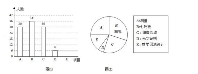 为落实 “双减提质”, 进一步深化 “数学提升工程”, 提升学生数学核心素养, 某学校拟 开展 “双减” 背景下的初中数学活动型作业成果展示现场会, 为了解学生最喜爱的项目, 现随机抽取若干名学生进行调查, 并将调查结果绘制成如下两幅不完整的统计图: