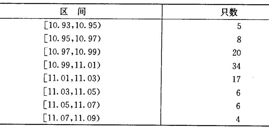 从汽车零件制造厂生产的一批螺栓中随机抽取 100 只,测量螺栓的口径(毫米),得均值为 11 ,方差为 $0.032^2$ ,并将 100 个数据统计成表 $9-8$ ,试检验螺栓口径是否服从正态分布 $(\alpha=0.05)$ ?