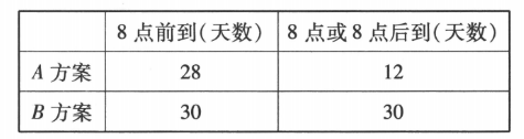 (1)根据小概率值 $\alpha=0.05$ 的独立性检验,判断 8点前到单位是否与出行方案选择有关。