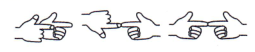 数学课上老师用双手形象的表示了 “三线八角” 图形, 如图 2 所示 (两大拇指 代表被截直线, 食指代表截线). 从左至右依次表示