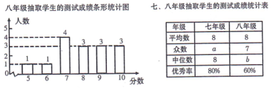 七年级抽取学生的成绩: $6,6,6,8,8,8,8,8,8,8,9,9,9,10$.