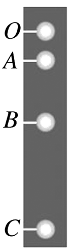 在利用频闪相机研究自由下落物体的运动时,将一可视为质点的小球从 $O$ 点由静止释放的同时频闪相机第一次曝光,再经连续三次曝光,得到了如图所示的频闪相片,已知曝光时间间隔为 0.2 s ,不考虑一切阻力.如果将小球从照片中的 $A$ 点由静止释放,则下列说法正确的是