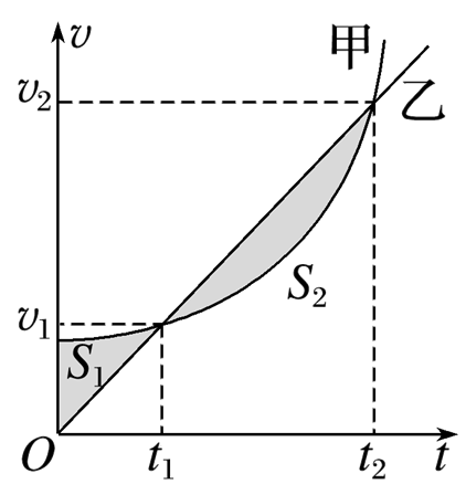 甲、乙两车在平直的公路上同时从同一地点同向行驶,两车的速度v随时间t的变化关系如图所示,其中两阴影部分的面积相等(S1=S2),则