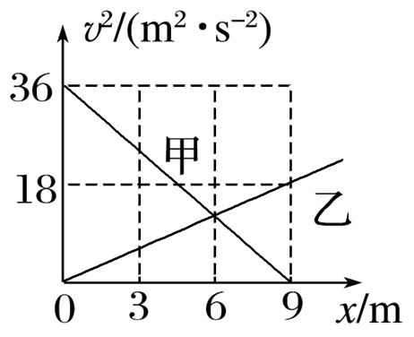 甲、乙两辆汽车同时同地出发,沿同方向做直线运动,两车速度的平方v2随位移x的变化关系图像如图所示,下列说法正确的是