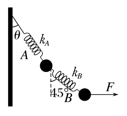 如图所示,两个质量均为m的小球通过两根轻弹簧A、B连接,在水平外力F作用下,系统处于静止状态,弹簧实际长度相等.弹簧A、B的劲度系数分别为kA、kB,且原长相等.弹簧A、B与竖直方向的夹角分别为θ与45°.设A、B中的拉力分别为FA、FB,小球直径相比弹簧长度可忽略,重力加速度为g,则