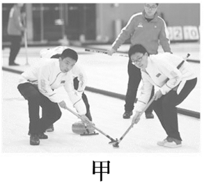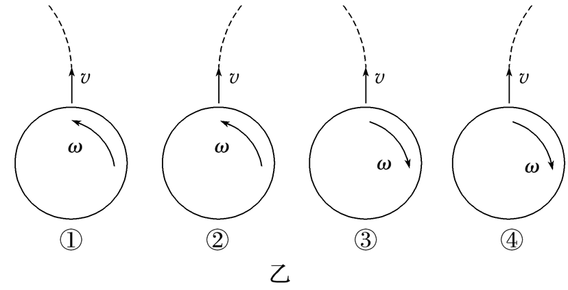 图甲为我国运动员参加冰壶比赛的场景.比赛中投壶手在投出冰壶时会带有一定的旋转(自旋),擦冰手在冰壶运动的前方高速摩擦冰面(刷冰),减小冰壶前方受到的摩擦力,可使冰壶做曲线运动.在图乙所示的各图中,圆表示冰壶,ω表示冰壶自旋的方向,v表示冰壶前进的方向,则在刷冰的过程中,冰壶的运动轨迹(虚线表示)可能正确的是