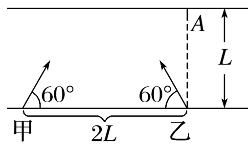 如图所示,河的宽度为L,河水流速为u,甲、乙两船均以在静水中的速度v同时渡河.出发时两船相距2L,甲、乙两船头均与岸边成60°角,且乙船恰好能直达正对岸的A点.则下列判断正确的是