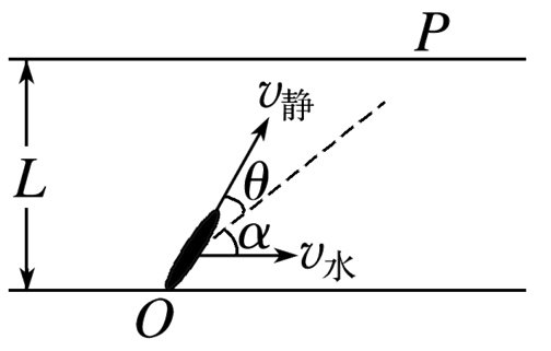 如图所示,小船从河岸的O点沿虚线运动,匀速运动到河对岸的P点,河水的流速v水、船在静水中的速度v静与虚线的夹角分别为α、θ,河宽为L,且v静、v水的大小不变,下列说法正确的是