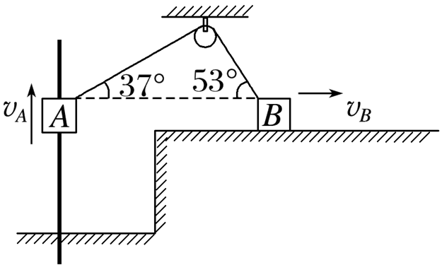 如图所示,绳子通过固定在天花板上的定滑轮,左端与套在固定坚直杆上的物体 $A$ 连接,右端与放在水平面上的物体 $B$ 相连,到达如图所示位置时,两段绳与水平面的夹角分别为 $37^{\circ}, ~ 53^{\circ}$ ,两物体的速率分别为 $v_A$ , $v_B$ ,且此时 $v_A+v_B=\frac{20}{3} m / s , \sin 37^{\circ}=\frac{3}{5}, \cos 37^{\circ}=\frac{4}{5}$ ,则 $v_A$ 的大小为