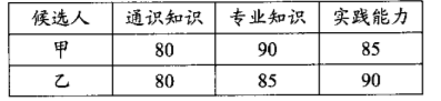 某校欲招聘一名教师, 对甲、乙两名候选人进行了三项素质测试, 各项测试成绩满分 均为 100 分, 根据最终成绩择优录用, 他们的各项测试成绩如下表所示: